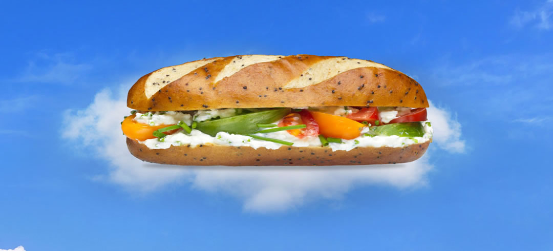 Couper le pain bretzel en deux et étaler le mélange cottage sur les deux faces.