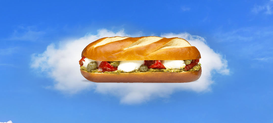 Disposer la roquette, la mozzarella, les tomates et les câpres à l’intérieur du pain.