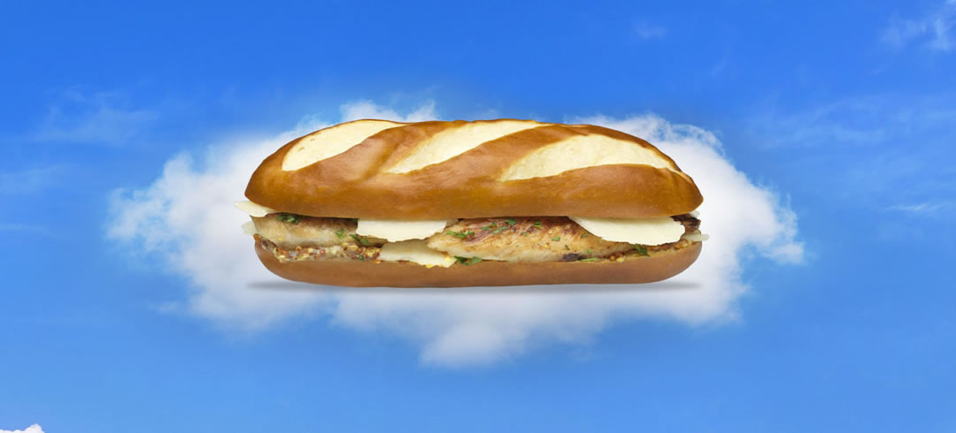 Mettre la roquette, le poulet et les copeaux de parmesan sur toute la longueur.