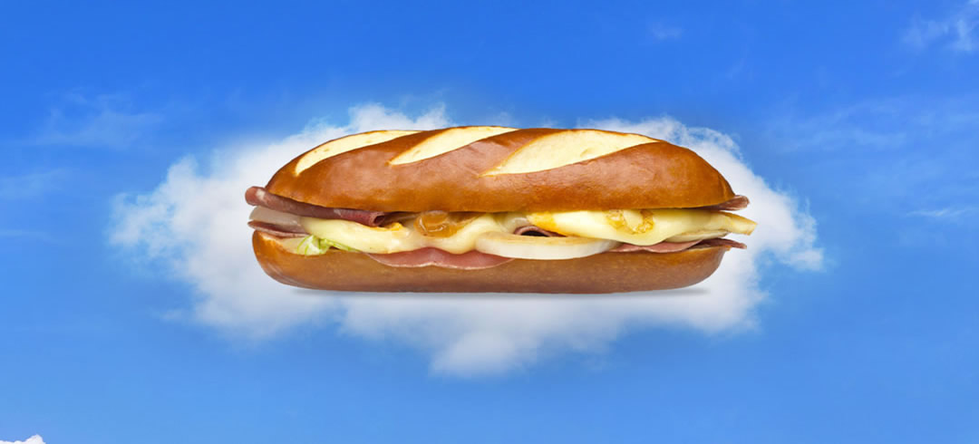 Couper une tranche de fromage à raclette en deux et la mettre dans le pain à bretzel préalablement coupé.