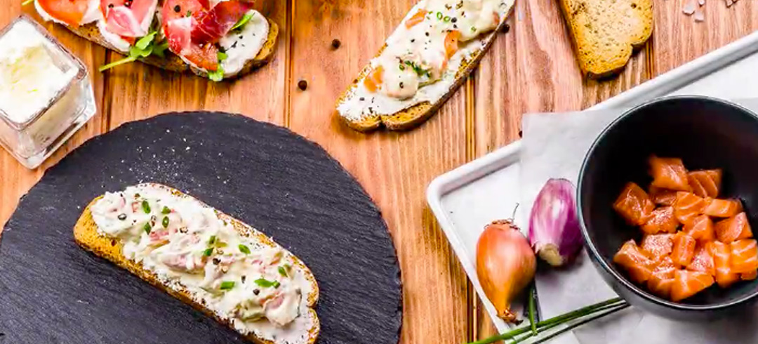 Dans un bol battez 1 portion de crème de fromage avec le jus d'un 1/2 citron. Ajoutez l’échalote, la ciboulette, la moutarde, les petits cubes de saumon, le sel et le poivre.